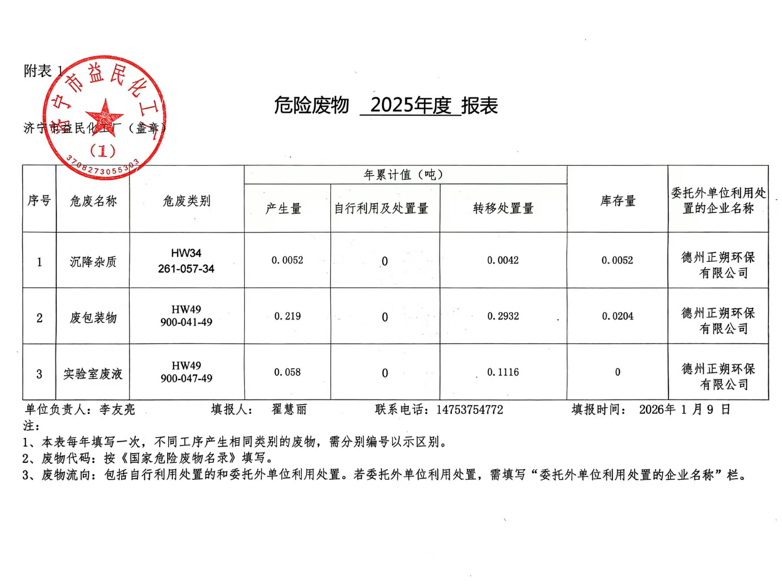 危险废物2025年度报表